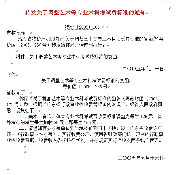 2、《轉發關于調整藝術等專業術科考試費標準的通知》