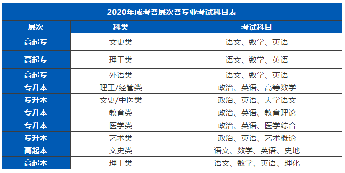 【導讀】近年來成考報考人數激增,2019年報考人數達到了49.5萬人,預測今年報考人數會更多。近日,有很多考生咨詢廣東成人高考網,2020廣東成考考什么,會不會很難?對此,廣東成考網整理了2020年成人高考各學歷層次各專業考試科目表,為各位考生提供參考。